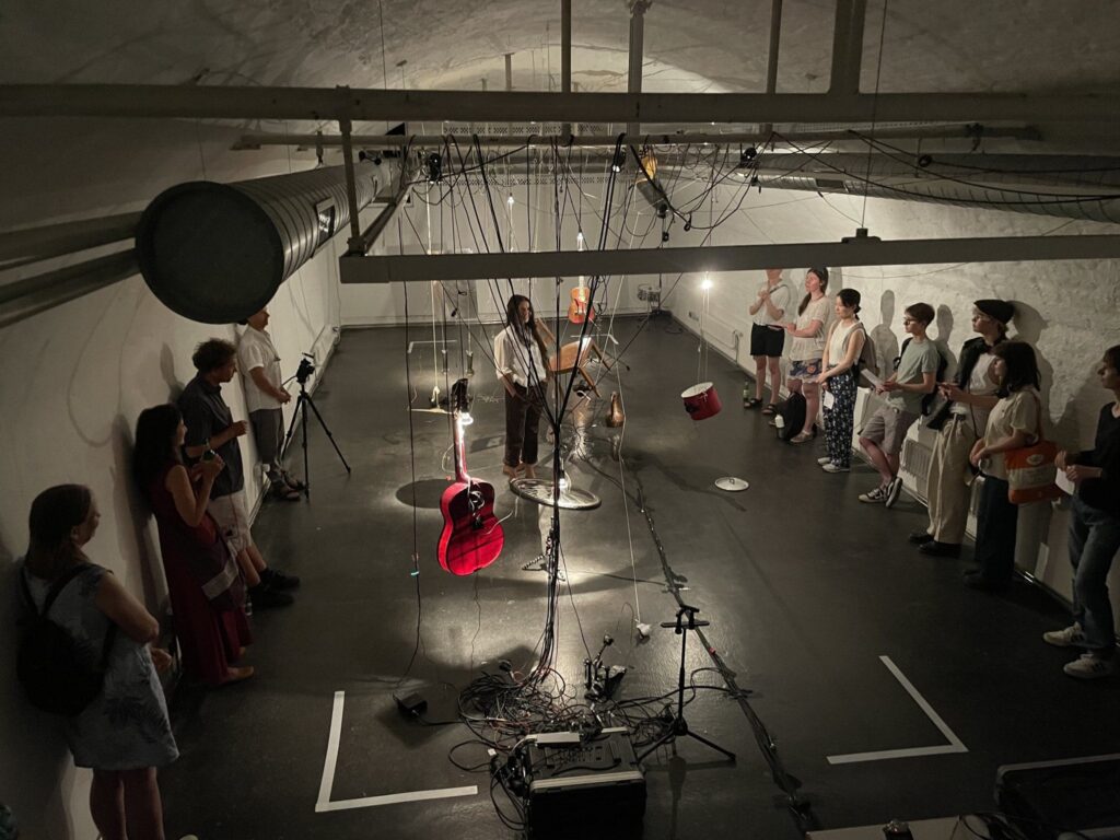 Ein Stück für eine Maschinistin, Objekte an Fäden und Live-Elektronik.